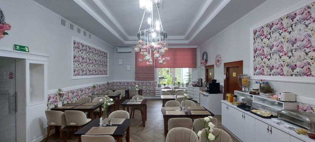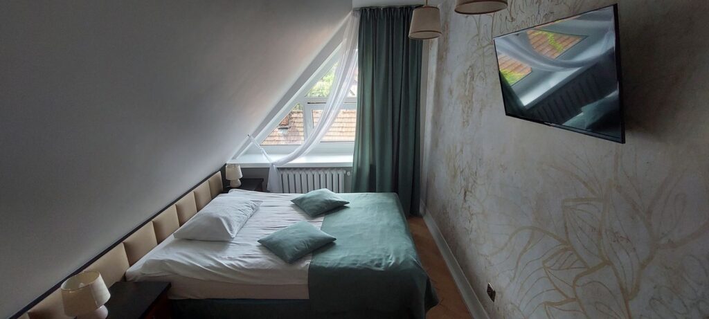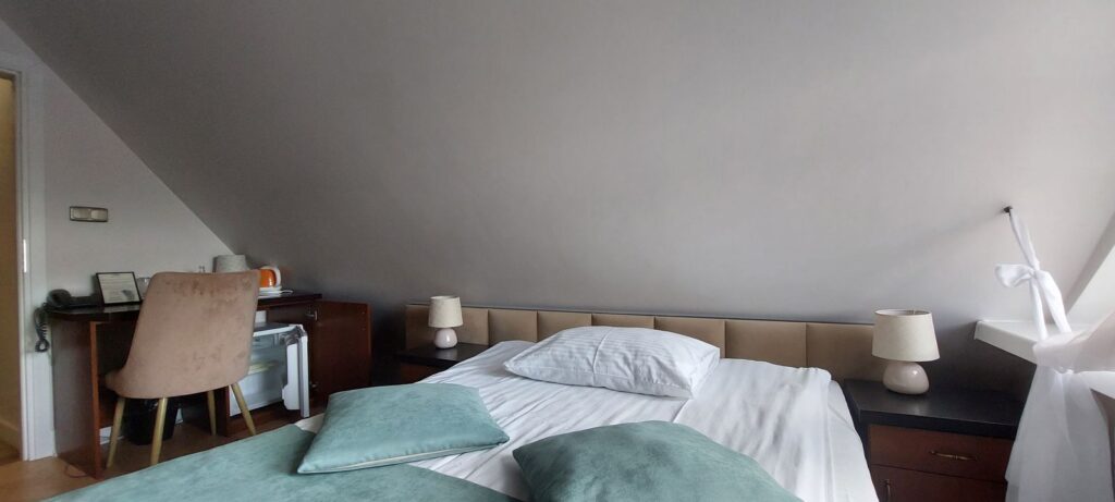 Hotel dysponuje parkingiem dla gości. I jeśli mowa o gościach, to zarówno single, pary jak i grupy odnajdą się w tym miejscu bardzo dobrze. Jest tutaj 16 pokoi, więc jest to hotel z kategorii kameralnych.