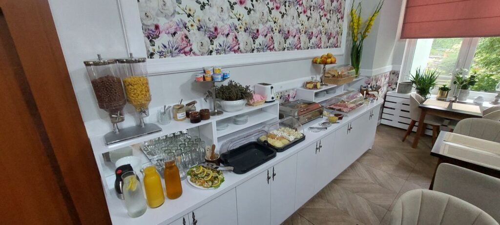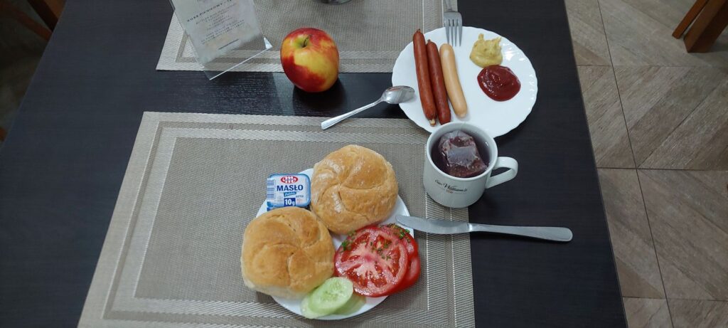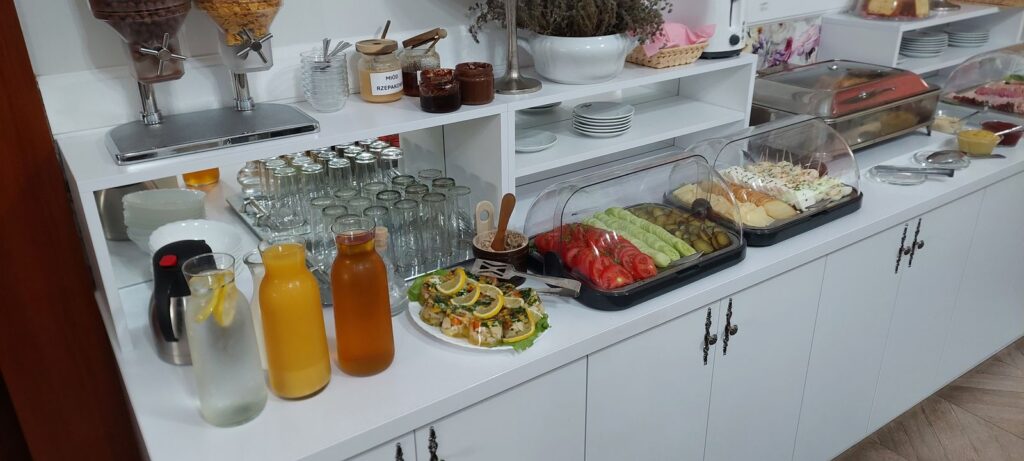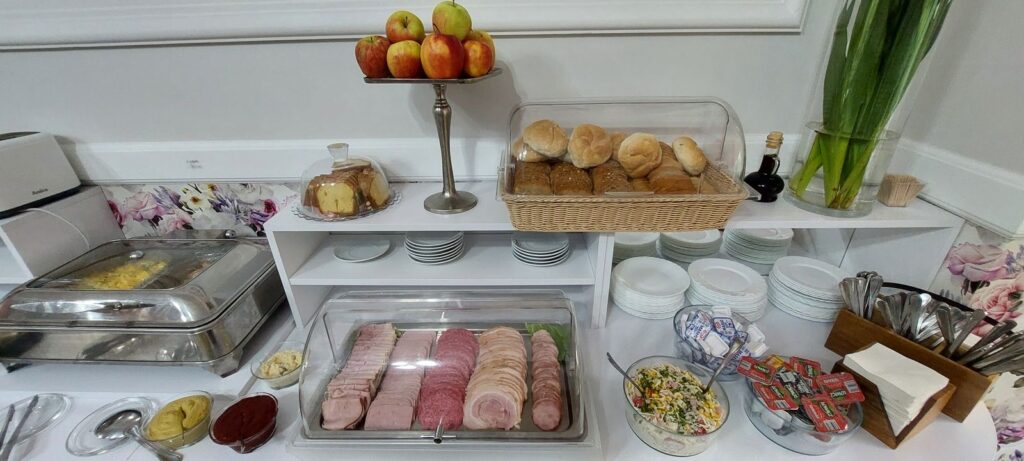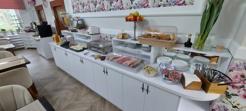 Śniadania w formie bufetu z wystarczającą ilością potraw są tutaj smaczne; oprócz klasycznych dań na zimno i ciepło była także sałatka, galaretka, na deser ciasto, dobra kawa.