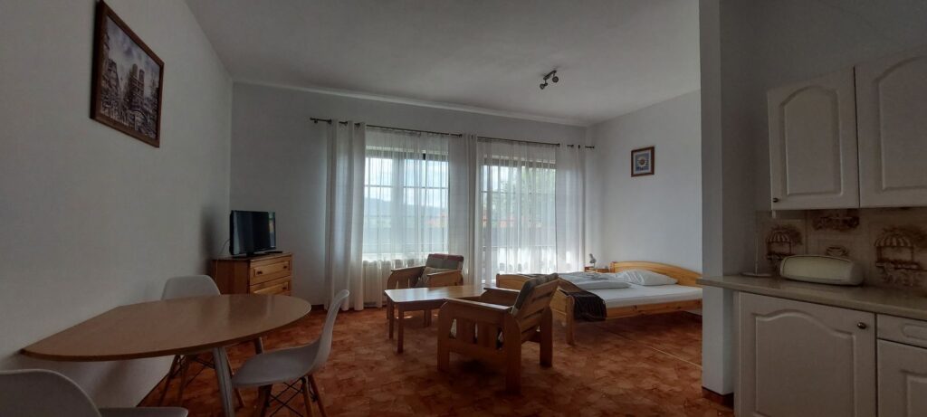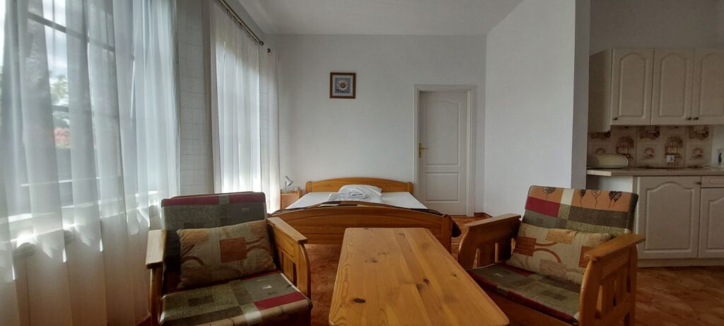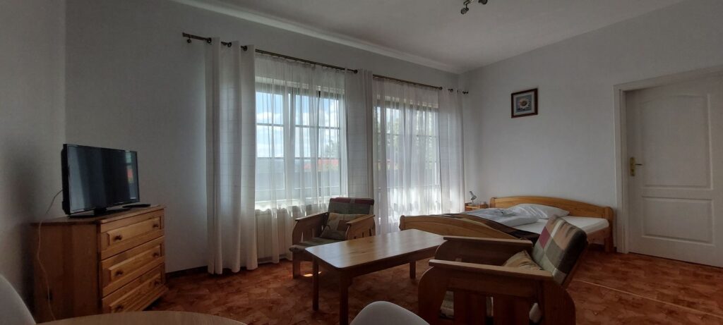 Mój pokój był bardzo przestronny i z bardzo dużą łazienką. Był na tyle przestronny, że można go nazwać apartamentem a to też dzięki własnemu aneksowi kuchennemu. Z pokoju okna wychodzą na duży ogród; wschody i zachody słońca to coś co warto tutaj zobaczyć.