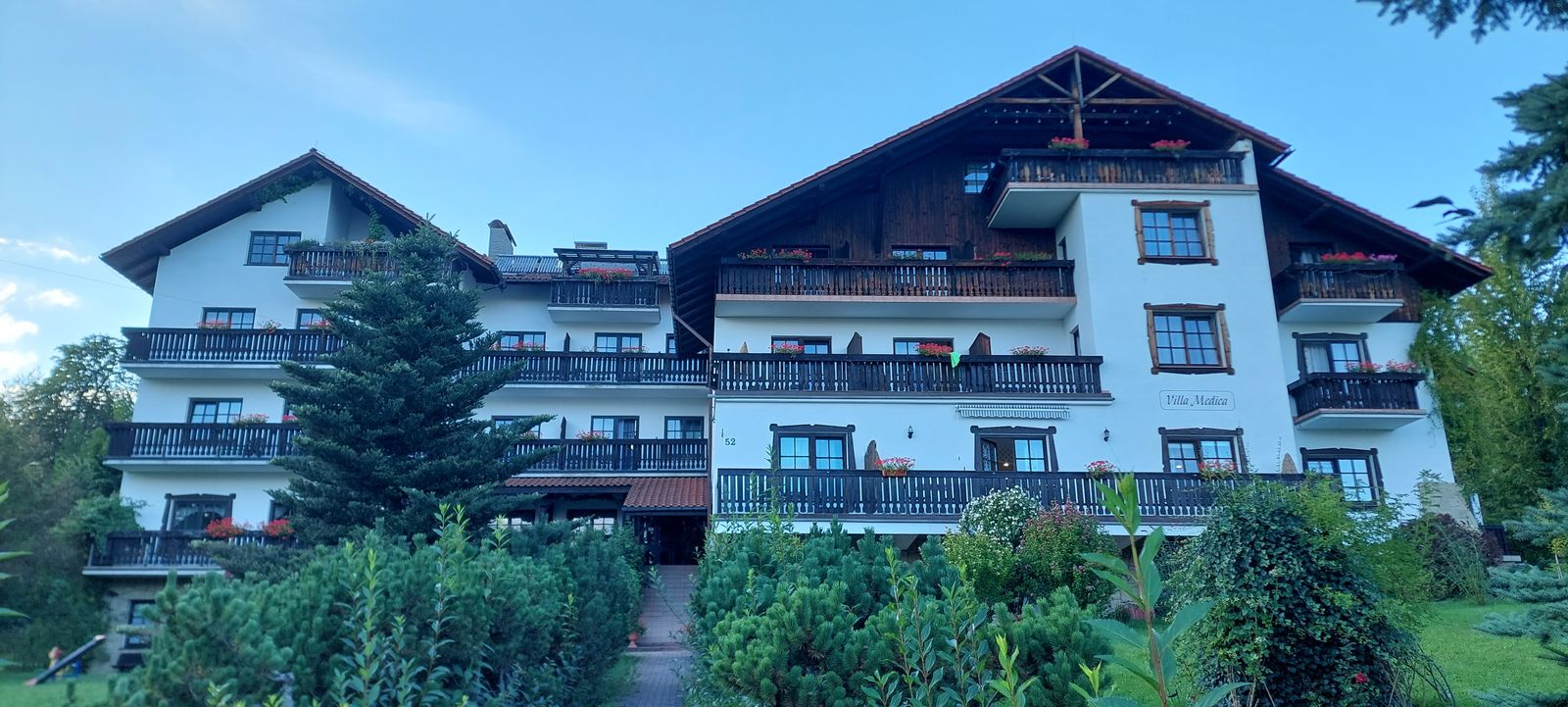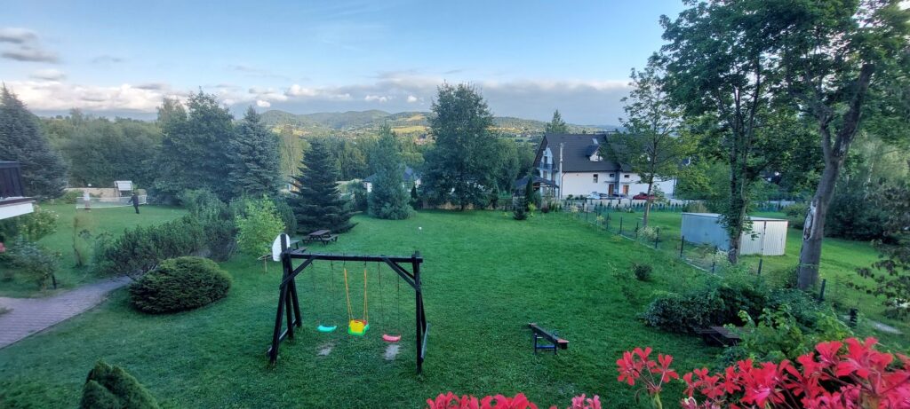 Villa Medica znajduje się na wzniesieniu; z dala od głównej ulicy i w bardzo spokojnej oraz zadbanej części Rabki-Zdrój; roztaczają się z niej fantastyczne widoki na okalające pasma gór, które mogłem podziwiać z rana oraz wieczorem dzięki dużemu balkonowi, który jest tutaj integralną częścią pokoi.