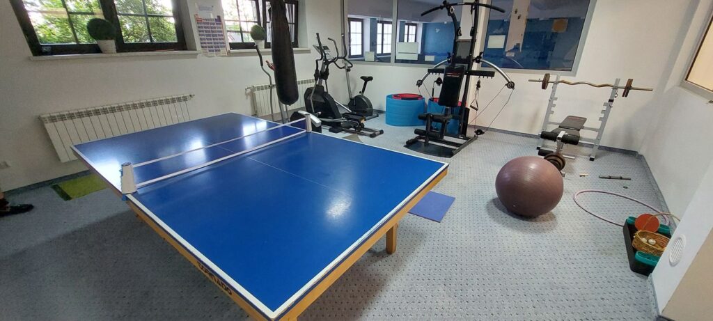 Jest także sala sportowa idealną pod zorganizowane zajęcia typu joga, aerobik.